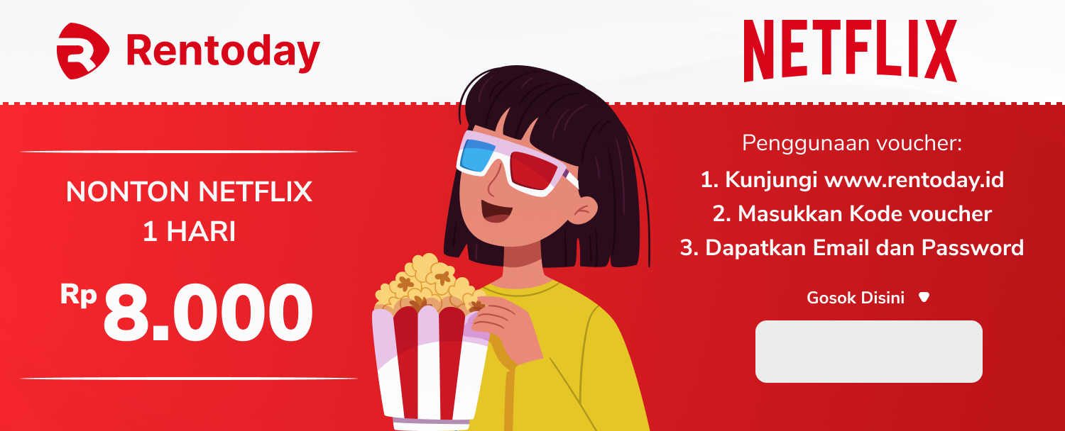 Nikmati hiburan tak terbatas dengan Voucher Netflix Harian dari Rentoday ! Dapatkan akses penuh ke seluruh konten Netflix selama 24 jam tanpa perlu langganan bulanan. Sempurna untuk maraton film, serial TV, dokumenter, dan banyak lagi.