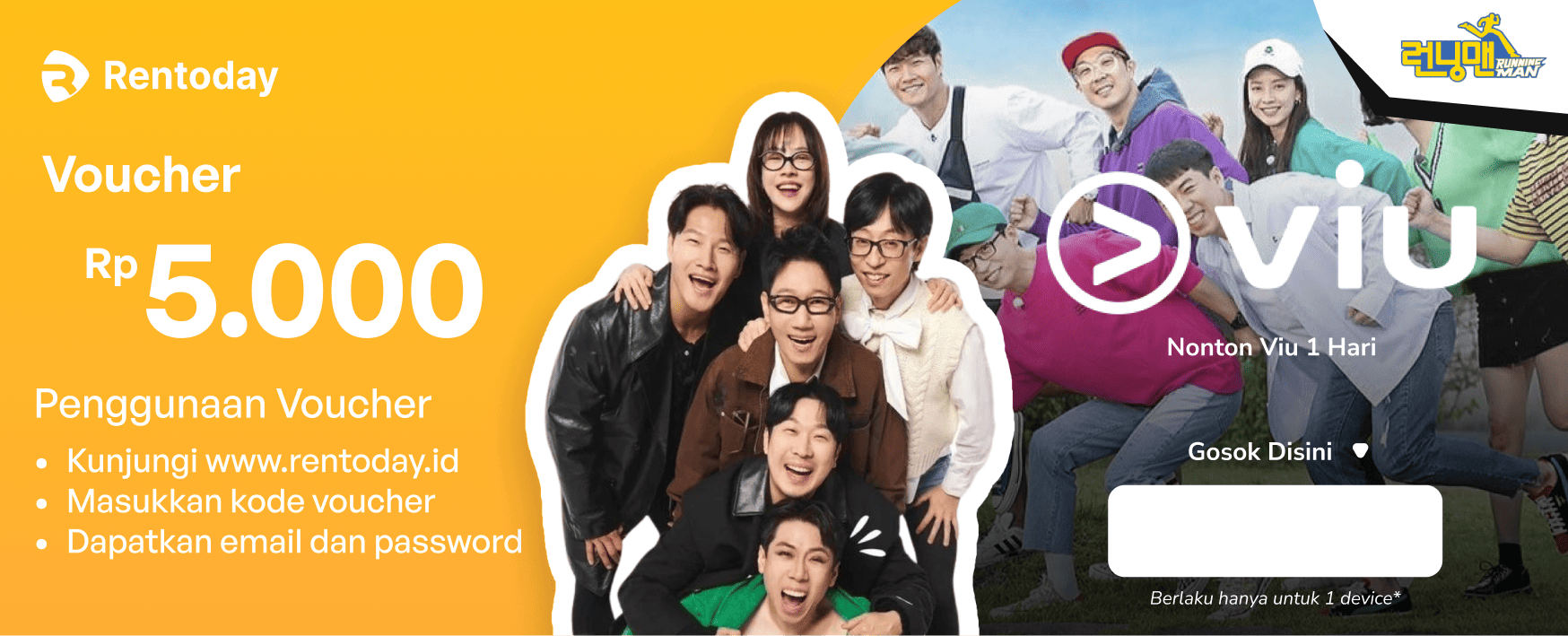 Tonton konten favorit Anda kapan saja tanpa ribet langganan bulanan, hanya dengan voucher harian VIU Rentoday.